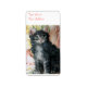 Ein zauberhaftes, graues, schwarzes Kätzchen gegen pfirsichfarbene, weiße, rosa und gelbe Blumen mit Namen und Adresse in rosa Schrift, passende Umschläge, Mitteilungskarten, Porto und ein Girls T-Shirt, können auch als Geschenkmarke verwendet werden.
