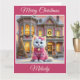Ein süß-weißes Kätzchen in einem niedlichen kleinen Pullover vor einem schönen rosa Viktorianischen Haus in dieser bezaubernden Weihnachtskarte. Fügen Sie Ihren eigenen personalisierten Text hinzu.