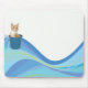 zwei Töne blaue Kurve unten mit hellbraunem und weißem Kätzchen im Topf