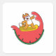 Katze als Surfer mit Watermelon Quadratischer Aufkleber