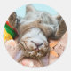 Katze am Strand und blauer Himmel Runder Aufkleber