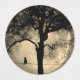 Fantastischer Vollmond mit einer schwarzen Katze auf Draht, die sie anschaut