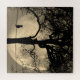 Fantastischer Vollmond mit einer schwarzen Katze auf Draht, die sie anschaut