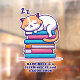 Katze auf einem Stapel Bücher Niedlich Personalisi Fensteraufkleber