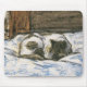 Katze, die auf einem Bett schläft; Claude Monet; c. 1865-70. Claude Monet war einer der Begründer der französischen Impressionistbewegung. Jeder möglicher Katzenliebhaber erkennt das reizend Bild einer Katze, die herauf schlafendes auf dem Bett gekräuselt wird.
