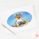 Katze färbt Ostereier mit ovalem Aufkleber in Schw