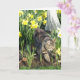 Naturtier und Blumenphotographie, einer Katze und der Narzissen-Blumen, Teams mit einem Geburtstagsgruß für diese Karte.