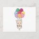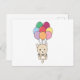 Katze fliegt mit farbenfrohen Balloons auf Postkarte
