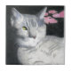 Ein Bleistift und Pastellfarben, gezeichnet von einer hübschen, mit Augen, grauen Tischkatze, schmücken diese Kachel!