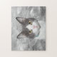 Graue und weiße Tuxedo-Katzenjunges auf abstraktem grauem und weißem Hintergrund für ein extra herausforderndes Puzzle
