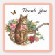 Katze im Blumengarten Vintag Danke Quadratischer Aufkleber