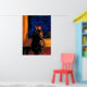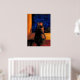 Dieses Poster enthält eine prächtige goldene, orange und braune Tortoiseshollenkatze, die auf einem roten Kissen sitzt und aus dem Fenster in einen dunkelblauen Himmel starrt. Sie wirft einen Schatten auf das vergoldete Holzfenster. Ich habe mein Originalfoto digital verbessert, um einen malerischen Effekt zu erzielen.
