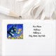 Rücksendeadressen-Aufkleber mit Louis Wains Tiermalerei Katze auf See von Blume (1860-1939). Eine schwarz-weiße Katze mit goldenen Augen riecht nach gelben Blumen. Im lila Hintergrund sind blaue Blumen. Ein wunderbares Geschenk für Katzenliebhaber und englische Kunst.