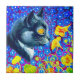 Fil mit Louis Wains Tiergemälde Katze in Sea of Blume (1860-1939). Eine schwarz-weiße Katze mit goldenen Augen riecht nach gelben Blumen. Im lila Hintergrund sind blaue Blumen. Ein wunderbares Geschenk für Katzenliebhaber und englische Kunst.