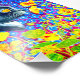 Foto Print mit Louis Wains Tiermalerei Katze in Sea of Blume (1860-1939). Eine schwarz-weiße Katze mit goldenen Augen riecht nach gelben Blumen. Im lila Hintergrund sind blaue Blumen. Ein wunderbares Geschenk für Katzenliebhaber und englische Kunst.