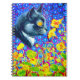 Notebook mit Louis Wains Tiermalerei Katze in Sea of Blume (1860-1939). Eine schwarz-weiße Katze mit goldenen Augen riecht nach gelben Blumen. Im lila Hintergrund sind blaue Blumen. Ein wunderbares Geschenk für Katzenliebhaber und englische Kunst.