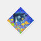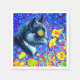 Napkins mit Louis-Wains Tiermalerei Katze auf See der Blume (1860-1939). Eine schwarz-weiße Katze mit goldenen Augen riecht nach gelben Blumen. Im lila Hintergrund sind blaue Blumen. Ein wunderbares Geschenk für Katzenliebhaber und englische Kunst.
