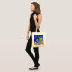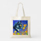Tote Tasche mit Louis Wains Tiermalerei Katze auf See von Blume (1860-1939). Eine schwarz-weiße Katze mit goldenen Augen riecht nach gelben Blumen. Im lila Hintergrund sind blaue Blumen. Ein wunderbares Geschenk für Katzenliebhaber und englische Kunst.