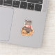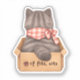 Flauschige graue Katze, die bequem in einer Pappschachtel sitzt. Der Text "Wenn es passt, sitzt es" drückt die angeborene Verhaltensregel der Katze aus.