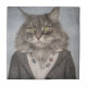 Dieses Ausrüstungsbeschreibungen, die eine Katze in einer Wolljackenstrickjacke und niedlichen in einer Strickhalskette kleidete.