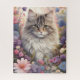 Dieses Puzzle zeigt eine wunderschöne Darstellung einer Katze, umgeben von bunten Blume in einem zauberhaften Garten. Die Katze hat langes, flauschiges Fell mit Streifen und Markierungen und intensive gelbe Augen, die direkt auf den Betrachter schauen. Die Blume sind in voller Blüte und zeigen lebendige Farbtöne wie Rosa, lila, Blau und Weiß. Der Hintergrund ist sanft verschwommen und schafft eine ätherische Atmosphäre. Dieses Puzzle ist ein perfektes Geschenk für Katzenliebhaber oder alle, die Rätsel mögen.