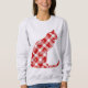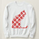 Sweatshirt in einer Silhouette sitzender Katzen im Urlaubsmuster von roten und weißen Büffeln karierte und verstreute Schneeflocken
