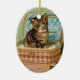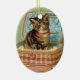Katze in einem Nähkorb Keramik Ornament