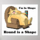 Ein Cartoon einer fetten Katze, die sich in seinem Lieblingsstuhl mit den Worten, ich bin in Form, Runde ist eine Form umgibt. Hey, wir können nicht alle einen Gott haben. Lass der Welt mit dir lachen
