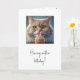 Eine flauschige Tabbattacke mit leuchtenden Augen leckt den Zuckerguss eines Geburtstagskuppchens, überzogen mit bunten Sprinklen Text kann geändert werden.