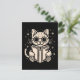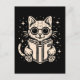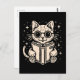 Katze liest ein Fantasiebuch Postkarte. Niedliche Katze liest ein Buch Himmelsgalaxie Retro Vintage Illustrationsraum Dekoration. Schwarz-Beige Katze mit kleinen Buchästhesien. Fantasy-Bücher lieben Geschenkidee.