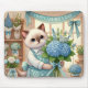 Katze mit Blume für Vatertagsgeschenk Mousepad