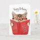 Katze mit Brille und Rotes Buch Geburtstag Karte