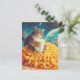 Katze Mit einem Glas Milch auf einem Planeten Käse Postkarte