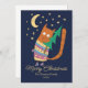 Katze mit einem Weihnachtsbaum. Die lustige Katze sieht sich den Monat und die Sterne an. Geschenk zu Weihnachten und zum Geburtstag. Ähnliche Designs gibt es in meiner Sammlung