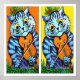 Dieses phantastische Katzenbild zeigt eine blaue Katze, die Geige spielt. Es ist von dem berühmten Fotzenkatzen Künstler Louis Wain.