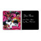 Ausdrucksstarke, lustige, natürliche maskierte Schwarz-weiße Katze mit Arlecchino Hut auf lebendigen rosa-, fuchsienseidenkleider. Elegante, skurrile, farbenfrohe, künstlerische Venezianische Masken mit Pfauenfedern aus unserer Kollektion mit goldener Blumenfantasie und hellen lila, roten, violetten Schnörkeln. Original Aquarellmalerei, Fotografie, Digitale Collage und Grafikdesign von Bulgan Lumini - Baldesign3d (c)