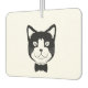 Schwarz-Weiß-Illustrationskatze mit Krawatte. Anpassbare Hintergrundfarbe (außer dunkler Farbe). Fügen Sie Ihren eigenen Text hinzu.