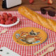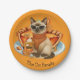 Katze mit Kürbiskuchen für Erntedank Party Pappteller