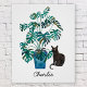 Katze mit Monstera Pflanze Wasserfarbe Personalisi Poster