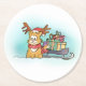 Katze mit Rentierhut und Sleigh Weihnachten Runder Pappuntersetzer