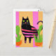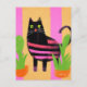 Katze mit rosa Streifen AI generierte Kunst Postkarte