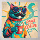 Katze mit überdimensionaler Sonnenbrille und einem Poster