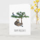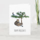 Auf dieser "Happy Holidays"-Karte hält eine Tabbattkatze einen Weihnachtsbaum voller wilder Vögel.