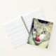 Dieses Notizbuch hat eine niedliche Katze, die darauf abgebildet ist.