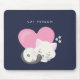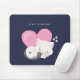 Mousepad mit einer ansprechenden grafischen Abbildung. Eine weiße Katze mit einem niedlichen Pfotenprint auf ihrem Fell. Schlafen friedlich. Ein großes rosa Herz hinter ihr und auch ein paar kleine Sterne. Dunkelblauer Hintergrund. Im Text steht: Katzenperson.