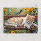 Katze ruht auf der Bank im Sommergarten Postkarte