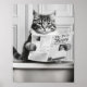 Katze sitzt auf der Toilette und liest eine Nachri Poster