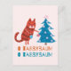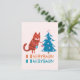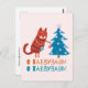 Rote Tabbierkatze schmückt seinen Weihnachtsbaum. Im Text unten steht O Tabbybaum. Niedliche Karte für Ihre Haustierkundschaft.