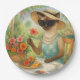 Diese charmanten Teller zeigen, wie eine Katzenfrau in ihrem Garten eine friedliche Teezeit genießt. Die Szene, mit einer Katze an ihrer Seite und üppiger Vegetation um sie herum, bringt ein gemütliches, rustikales Ambiente zu Ihrer Veranstaltung. Das volkstümliche Design in sanften, erdigen Tönen macht diese Teller zu einem idealen Ort für Party, Tee-Ansammlungen oder jede Veranstaltung mit skurriler Touch.