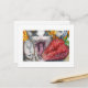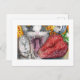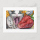Katze, Uhr und Erdbeere Postkarte